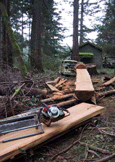 This is an old Stihl 090, on the future cedar steps to Kathleen's studio deck. |